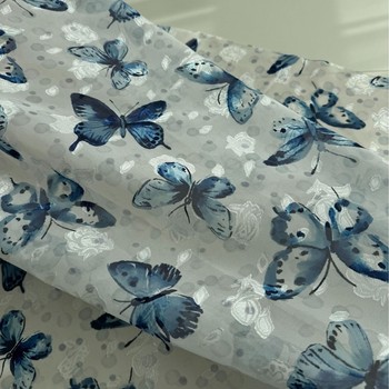 שמלת פרפר כחול-פרפר כחול לבן נשים 100% פוליאסטר עבור חומר תחרה שיפון באביב/קיץ רך